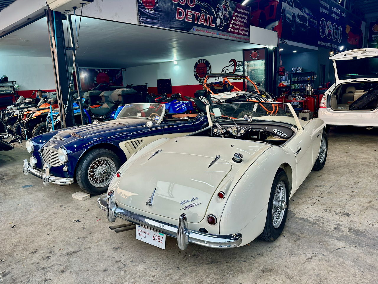 The road narrows, and there’s really no choice of route as the side roads are sand, so I resolve to get to Phnom Penh, 180 km, which is going to be a long day with the border crossing. On the outskirts of Phnom Penh I spot a couple of Austin Healey 3000s in a garage. The owner presses me to park my bike and take one out for a spin. This has always been my dream car, but I wouldn’t trust myself with one in the Phnom Penh rush hour, and there’s nowhere realistic to drive one, even if I wasn’t bushed from cycling all day.