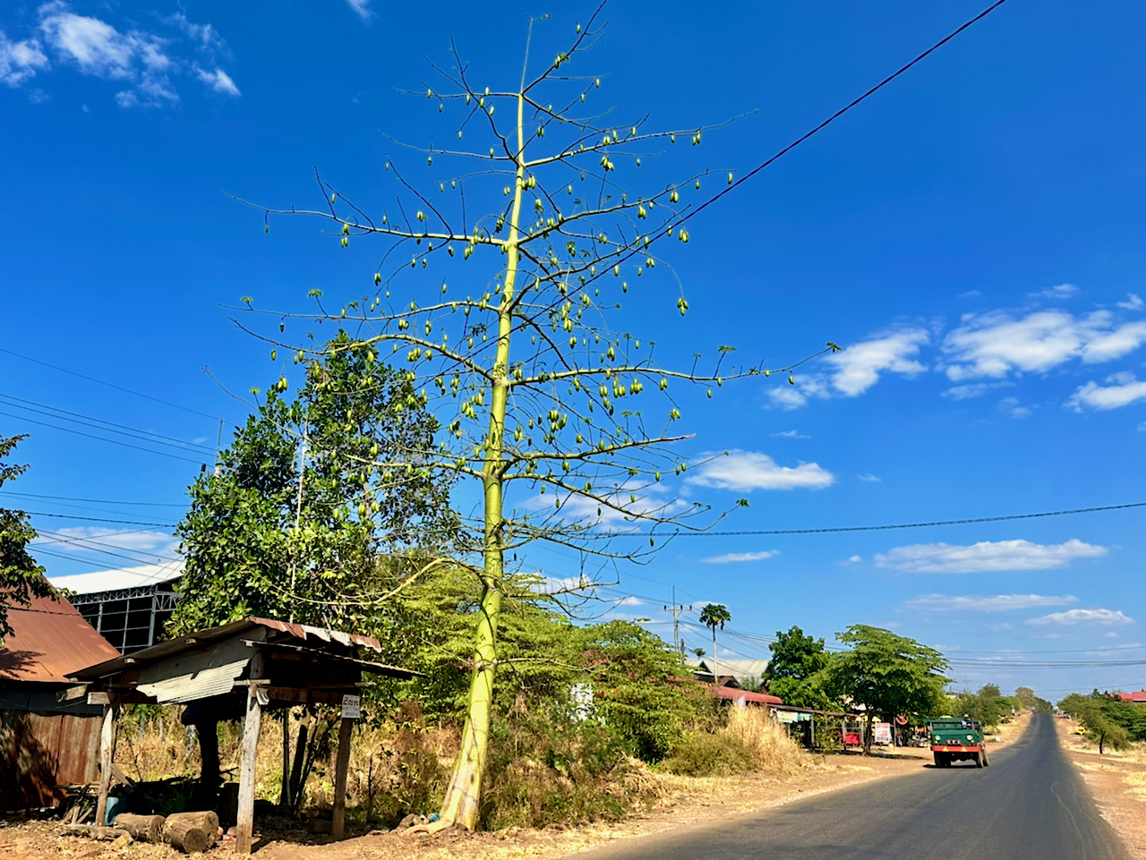 It’s even more windy this morning, it feels very autumnal with leaves being blown off the trees, and it worries me given the distance I need to cover to Strueng Trung, the next town along. Luckily it eases off through the morning.