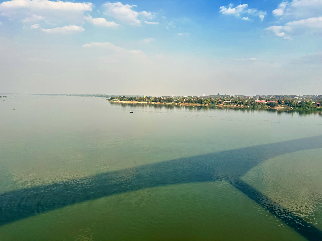 From Strueng Trung it’s north to the Lao border, about 60 km. The road is lovely to ride and there’s hardly any traffic. Just before the border I get a puncture (wire again, probably been in there since Vietnam) and get passed by another long-distance cyclist.