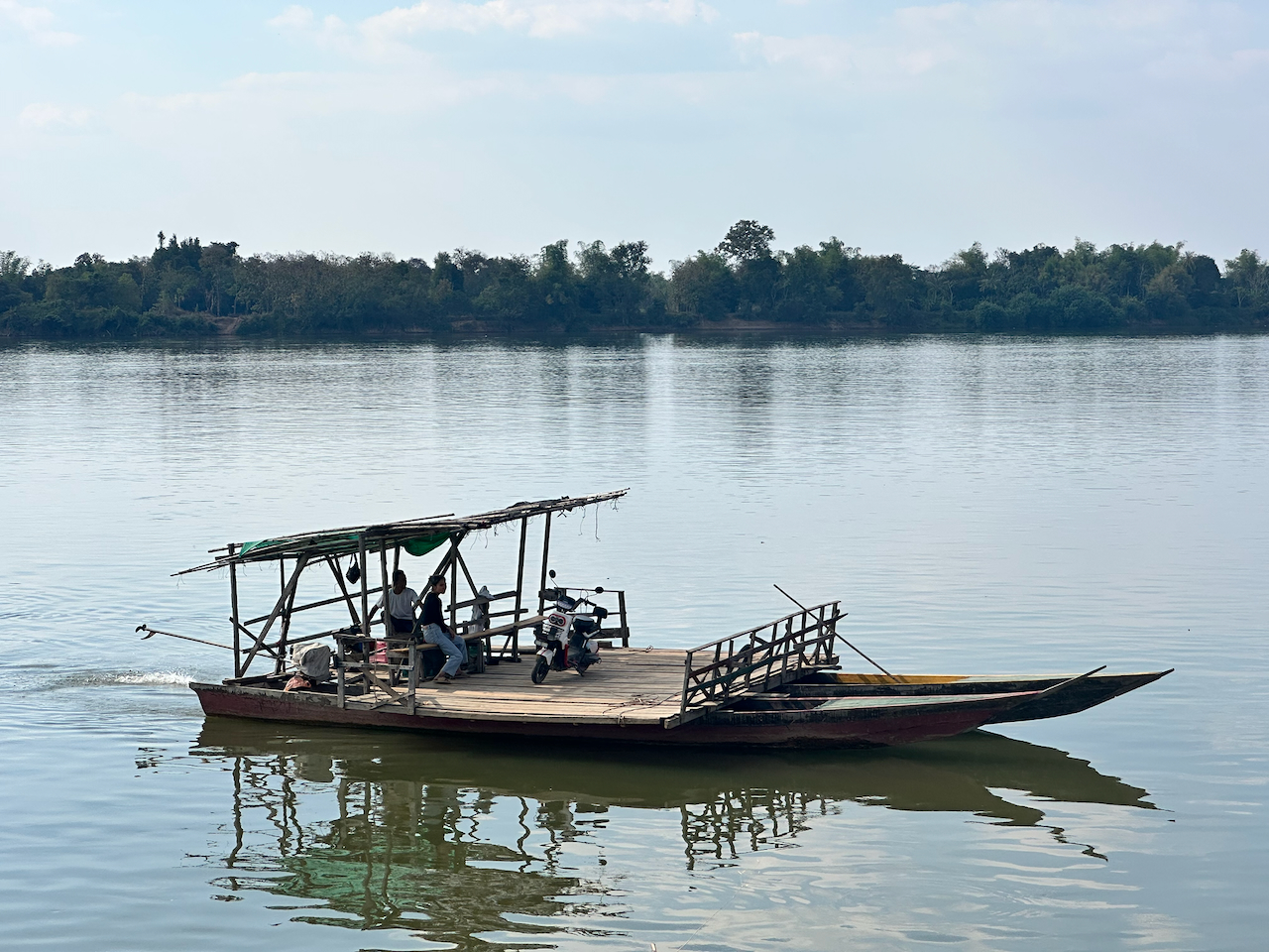 For some unknown reason I decide to ride up to the end of the island for the other ferry, which is sand roads all the way and virtually the same kind of ferry as before. The ride up to Pakse is long and hot, as expected, and mainly uneventful. I’m passed by a Dutch couple from Donne’s guest house (in a van) who offer me water. Then at the stop in Pakse there’s a French couple who were also at the guest house, a little bemused that I’m covering the same ground as they are but on a bike.