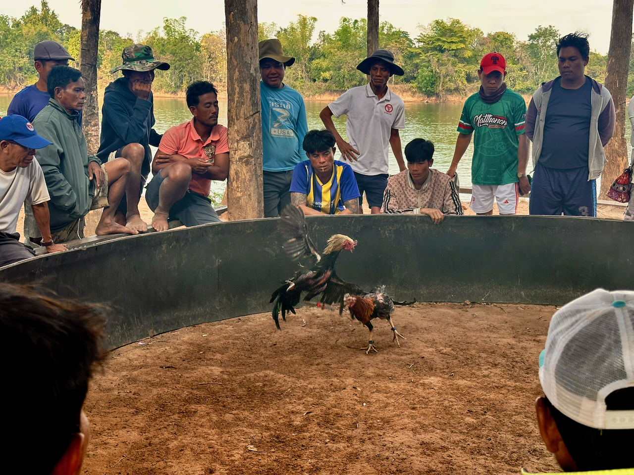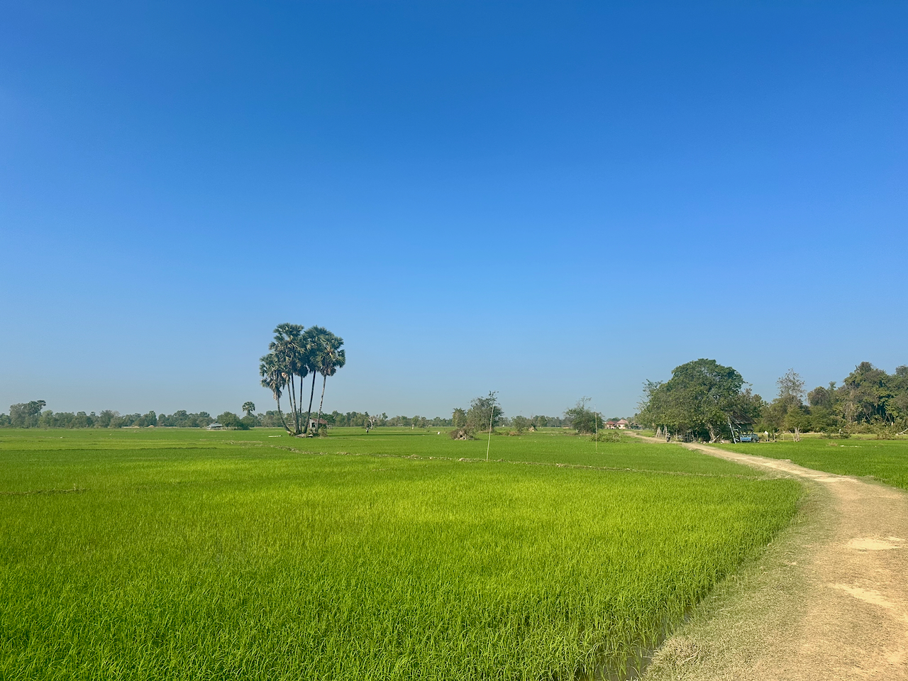 The road to the Thai border is almost deserted, which means a quick crossing, then the rest of the day is spent on very rural roads around the reservoir, some asphalt, some concrete and a lot of compacted sand.