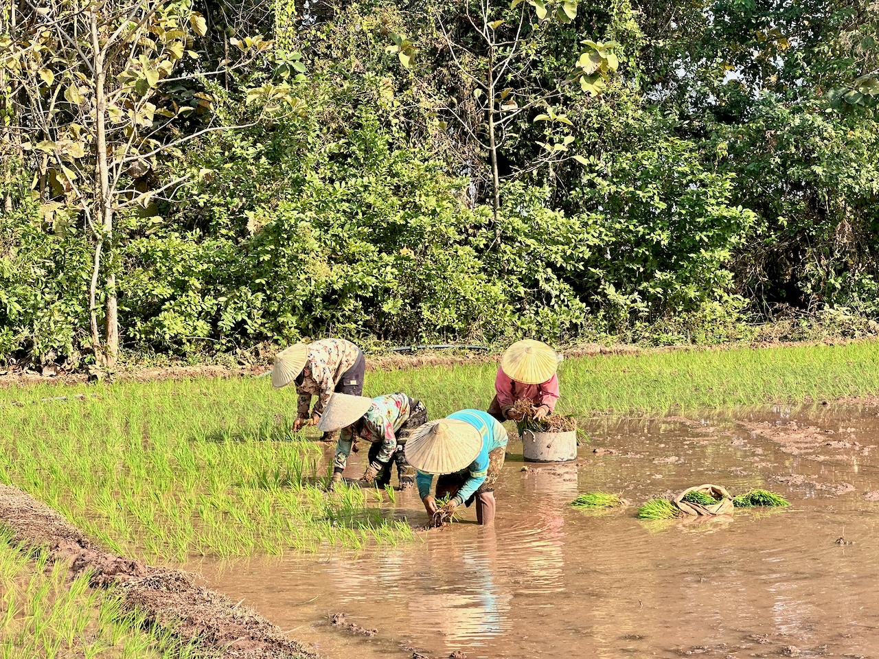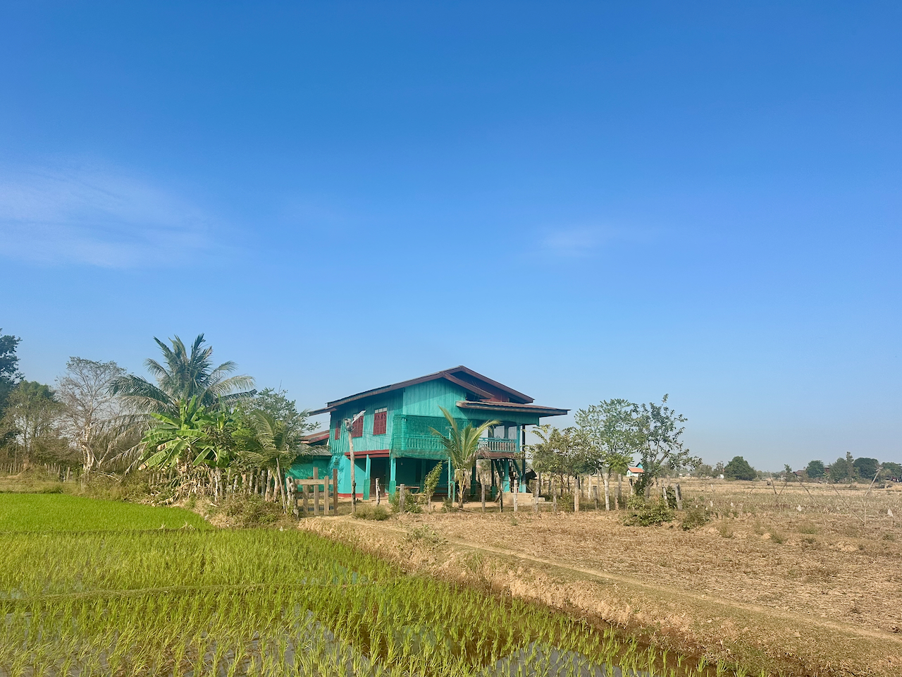 The south part of Laos is very different to the north. Not just that there are no mountains, here I’m less of a novelty, though no less warmly welcomed. I’ve passed a fair few cyclists on their way to Cambodia, including three Indians. Some of the kids run out to shout hello, but it’s not the excited crowds like we got in the north.