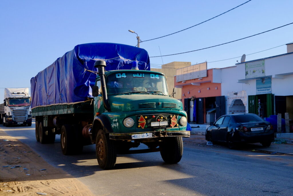 The border opens at 9AM Moroccan time, not Mauritanian time as advertised. I’m at the front with the Spanish motorcyclists and get through the multiple passport checks, searches and sniffer dogs fairly quickly to be the first vehicle of the day crossing the no-mans land. Several kilometres of massively potholed gravel in what resembles a landfill site, the motor vehicles coming the other way are having as hard a time as I am.