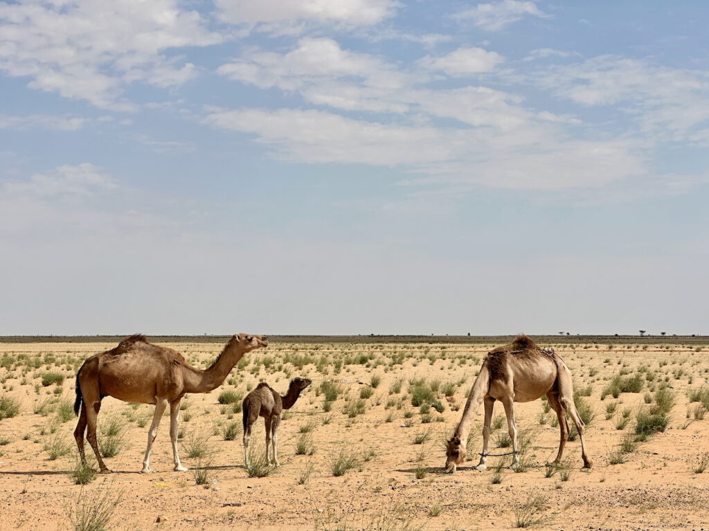 We are offered breakfast — baguette, omelette, Nescafe, Mauritanian bread. We’re told the price is still 1000 for the five of us, but we agree between ourselves to double this to cover all the food we’ve had.