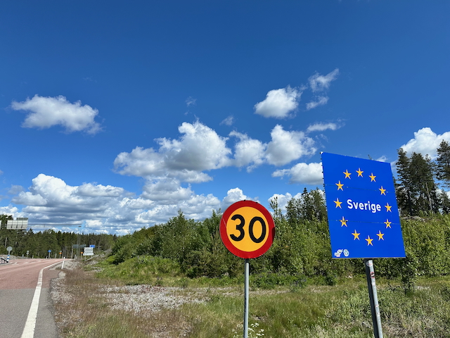 Then out to Sweden. Crossing the border’s a bit tricky, there’s a short section of motorway on the Norway side which has to be circumambulated by taking a gravel path marked “private”, then on the Swedish side a long section of single-lane which is pretty hairy as everyone else seems to think it’s still motorway.