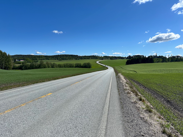 Off the ferry in Turku, Finland, planning to ride north-ish for a day then south to Helsinki. Weather is lovely, but at lunchtime I check and tomorrow is forecast for rain and cold. I change direction to give a shorter distance for tomorrow, and this turns out to be a good move — I’m on the quiet back roads heading for Karkkila, through the forests. Gorgeous.