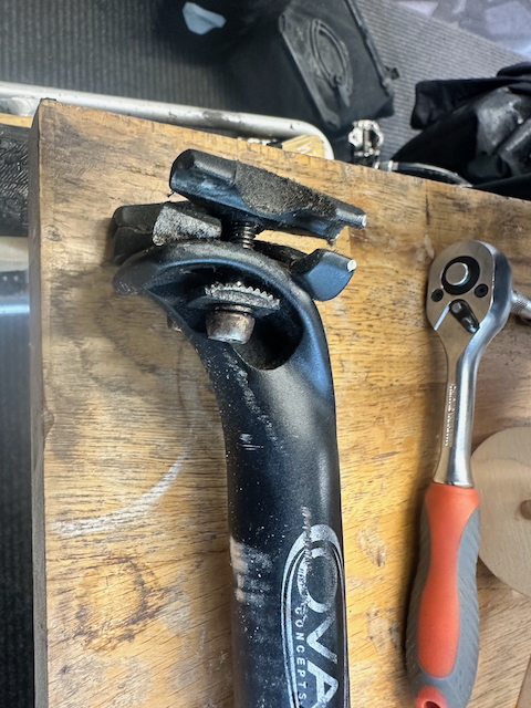 Pop into the bike shop to replace the broken seat post clamp. I think I was lucky to get away with this: