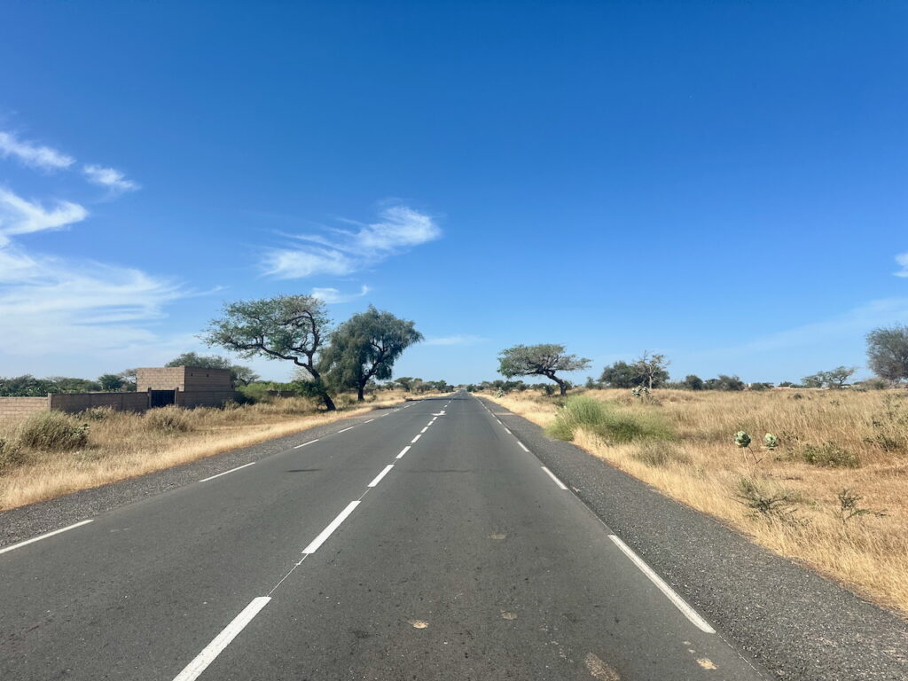 The trees are larger, there is a little less sand, but it’s very hot from midday onwards. It was cool out by the sea but inland it’s a bit warmer. I stop at Thièl and plan my next move. Right is to Dakar, although iconic I don’t think I’ll go there. Even Leo will stash his bike outside the city and go in by bus. Left is a busy main road to Fatick and also advised against on account of the number of lorries. Straight on will be slower but I’m in no hurry.
