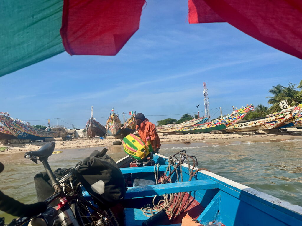I skip breakfast, just a quick coffee, in order to cycle to Jiffer in time to catch the pirogue (boat) to Niodior. However, when I get there they won’t take the bike as it’s too busy today, so I take a private boat instead and could have come later. The idea is that I can stay overnight and get a connecting pirogue to either Toubacouba or Sokone which I’ve been told leave on alternate days.