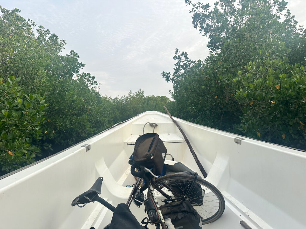 The trip is about four hours through mangroves and the delta. At Toubacouba I’m around 25 km from the border with The Gambia, which I’d like to try crossing as early as possible, so no cycling today.