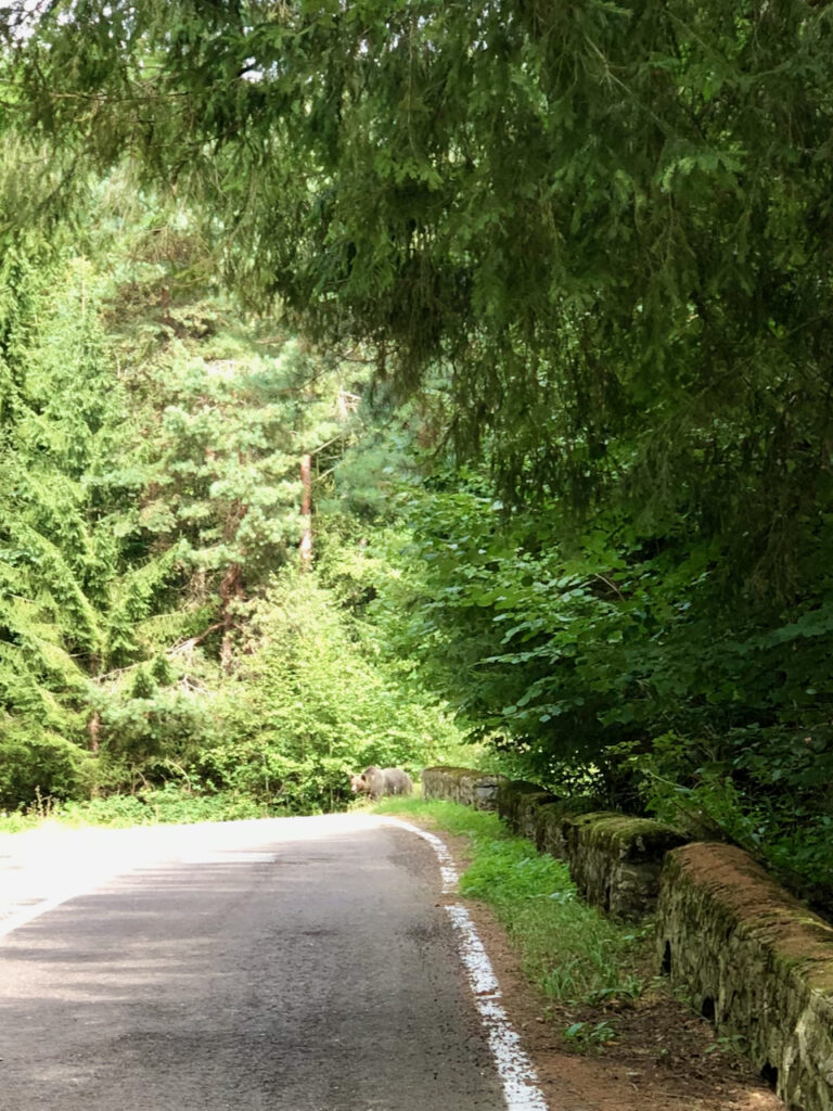 The forests in central Romania are home to most of Europe’s brown bears — around 6,000 of them. Mostly they stay off the roads on account of the traffic, but if you’re on a lightly-used road you may well come across one. When you see one, it most likely won’t have seen you yet, they are very short-sighted. If it’s on its own, you can usually just cycle past, keeping a wide berth, and it won’t bother you. But if you see a mother bear with cubs, turn round and get a good distance away. After a short walk down the road, they’ll head back into the forest. Do not try to get close for a photo, as cute as the cubs look, the mother bear can run at 40 km/h if she perceives you as a threat.